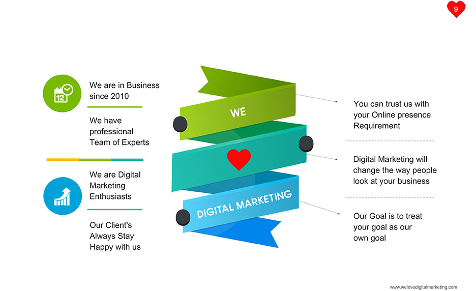 We Love Digital Marketing is a Digital Making Agency based in Kolkata. With over 5 Years of Experience is setting up and successfully running Digital Marketing Campaign for many business; We Love Digital Marketing has been able to show how the Digital Marketing is transforming the means of Marketing in this new era of technology and communication.